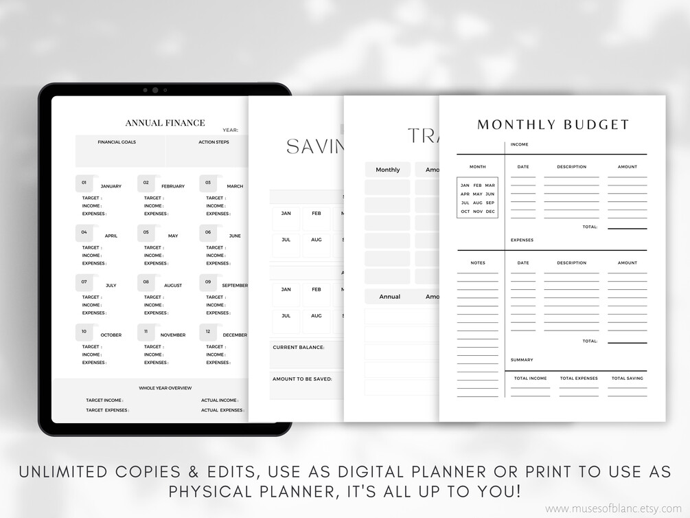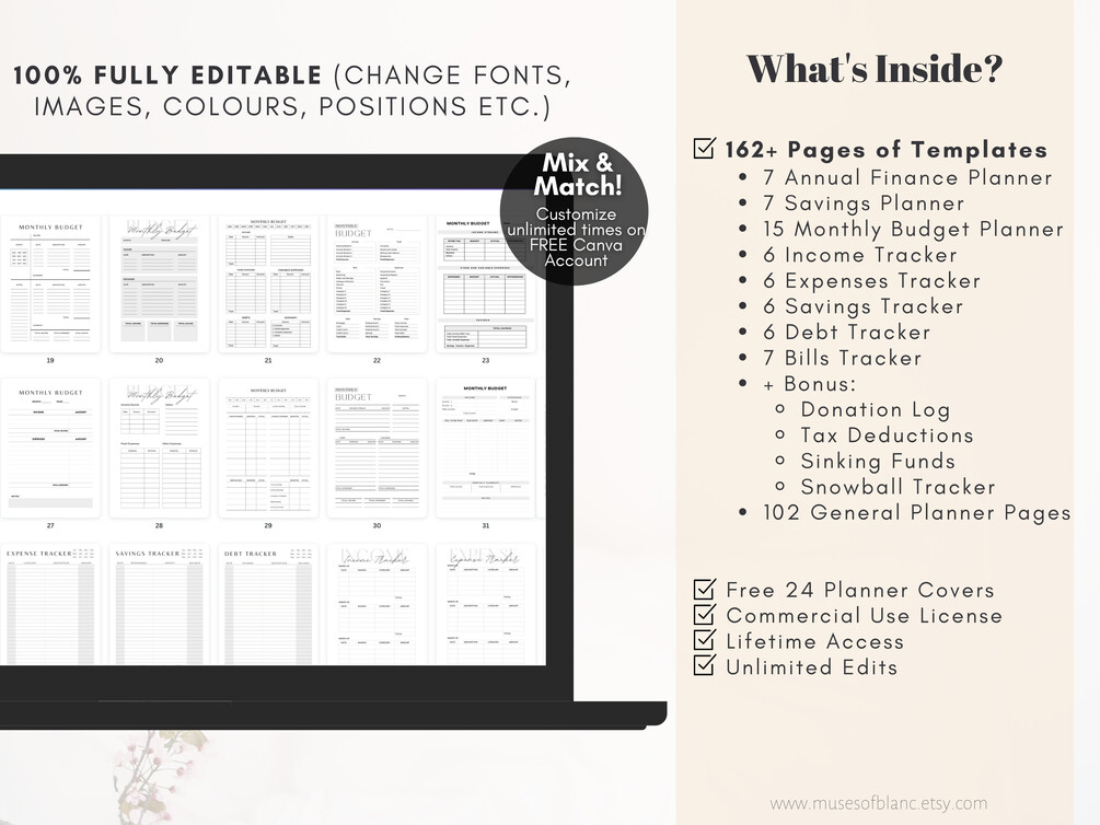 Budget Finance Planner Bundle, Editable Canva Templates, Undated Digital Printable Planner - Personal or Commercial Use, Digital Download